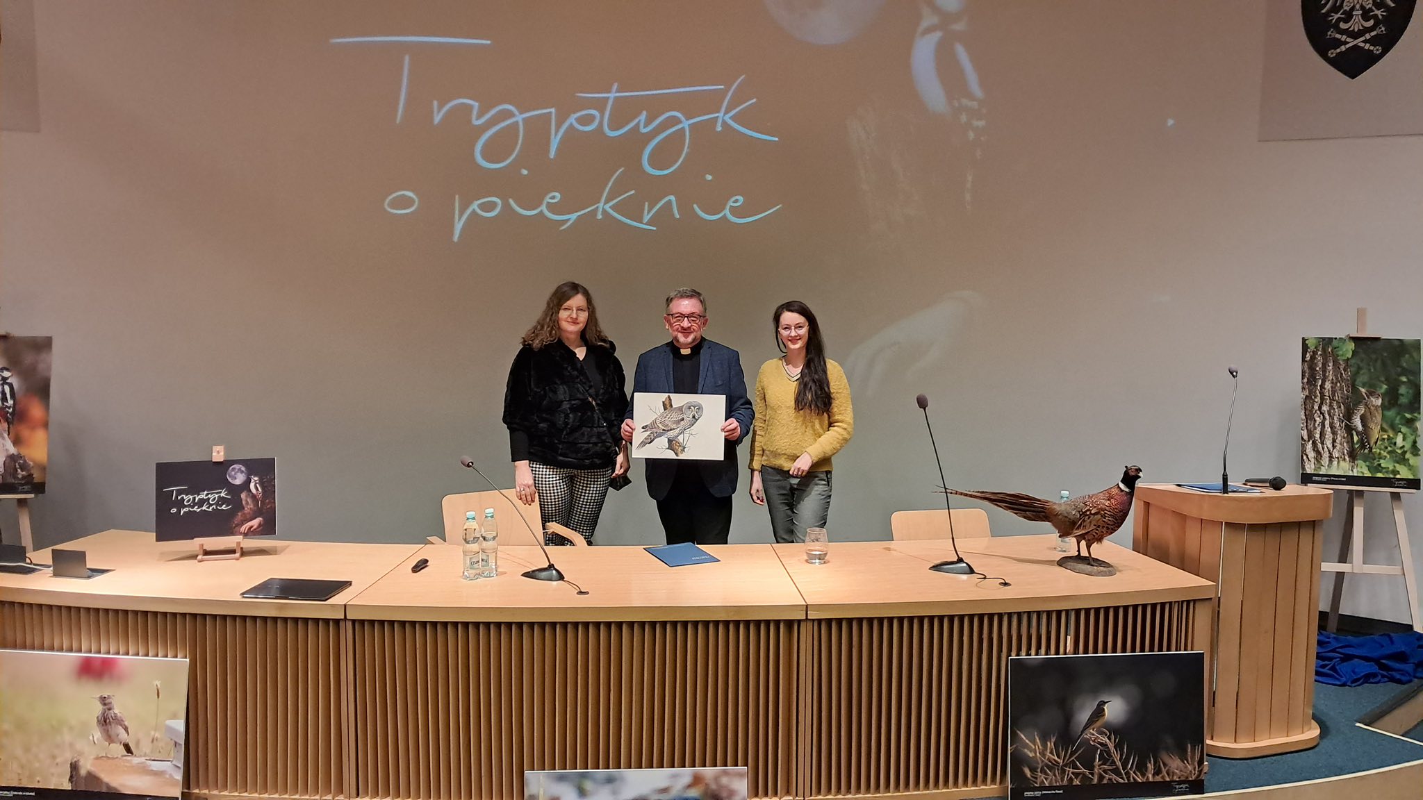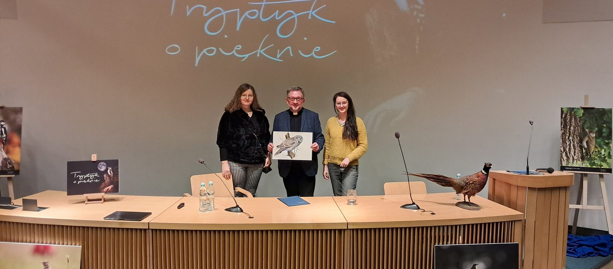 Młodzież uczestniczyła w pierwszej części „Tryptyku o pięknie”: prelekcji pt. „Ptaki w teologii i kulturze chrześcijańskiej, którą wygłosił absolwent Jedynki, ks. dr hab. Arkadiusz Wuwer, prof. UŚ. Wykład połączono z otwarciem wystawy ornitologicznych fotografii wykonanych przez księdza profesora.
