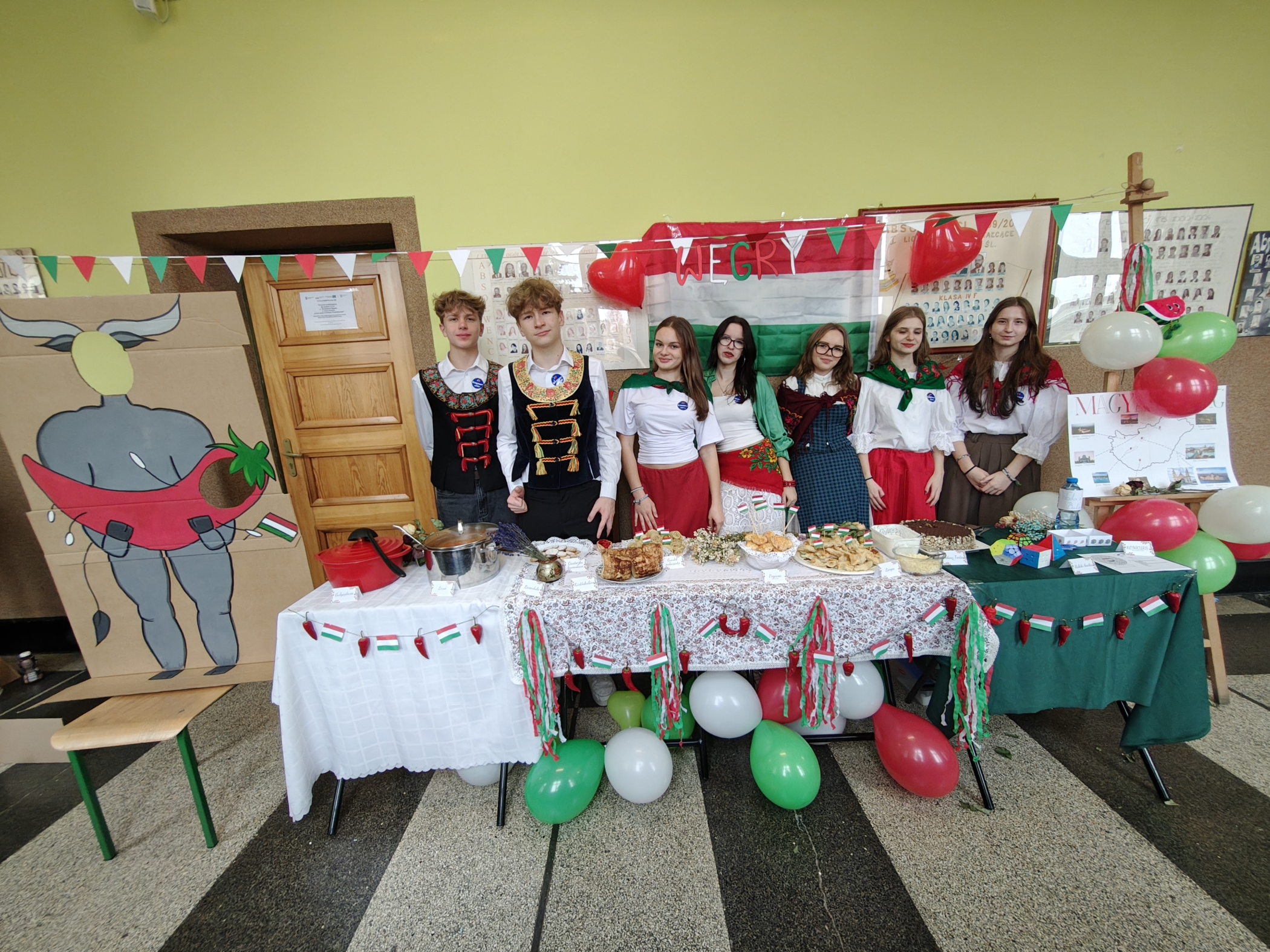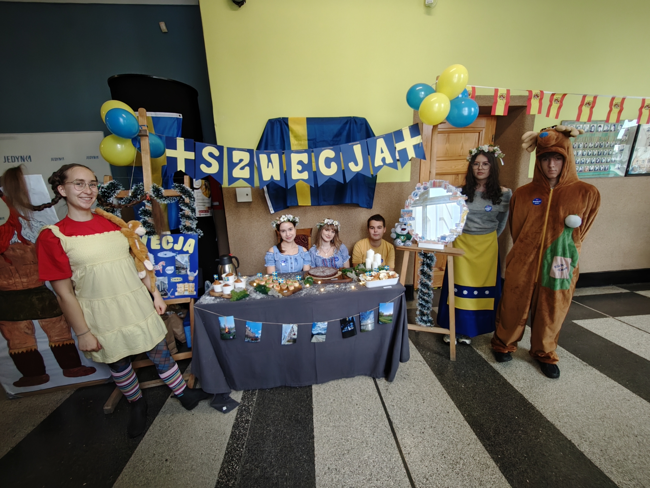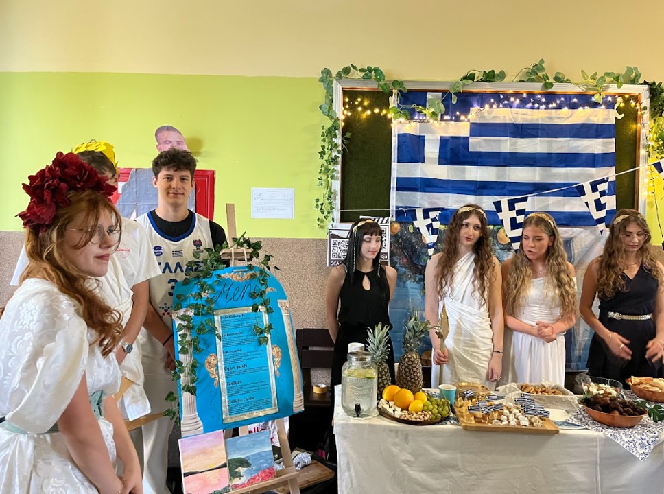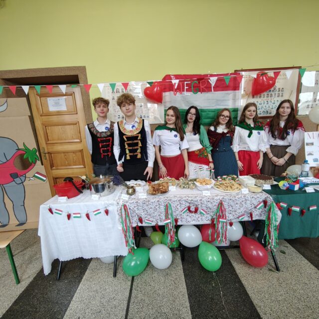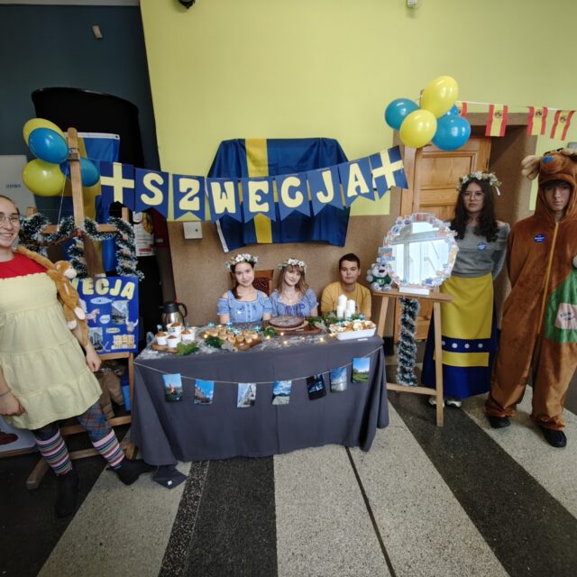 Pierwszego dnia razem z uczniami zaangażowanymi w projekt ARTEMIS – Art, STEM, Inclusion and Sustainability zaprezentowaliśmy nie tylko kulinarne oblicze naszego kontynentu, ale również jego różnorodność kulturową i artystyczną. W tej niezwykłej podróży po Europie towarzyszyły nam łosie, Fizia Pończoszanka, panie Hiszpanki, a nawet włoscy artyści! O tym, co wydarzyło się podczas ubiegłorocznych mobilności w ramach programu Erasmus+, można było dowiedzieć się z wystawy poświęconej projektowi Active Global Citizenship oraz z opowieści uczestniczek wyjazdów, które z pasją zachęcały pierwszoklasistów do udziału w kolejnych inicjatywach międzynarodowych. Do wspólnego świętowania zaprosiliśmy także uczniów ze Szkoły Podstawowej nr 1 w Wodzisławiu Śląskim, którzy wzięli udział w warsztatach artystycznych. Z kolei Firma PREVAC przygotowała dla naszych gości z SP1 warsztaty naukowe. Ogromnym powodzeniem cieszyła się fotobudka Erasmus+, w której uczniowie i nauczyciele mogli zrobić sobie pamiątkowe zdjęcia w europejskim klimacie, z flagami, gadżetami i symbolicznymi rekwizytami z różnych krajów. Całość wydarzenia zwieńczył wspólny taniec, który połączył wszystkich uczestników w duchu europejskiej przyjaźni i współpracy.