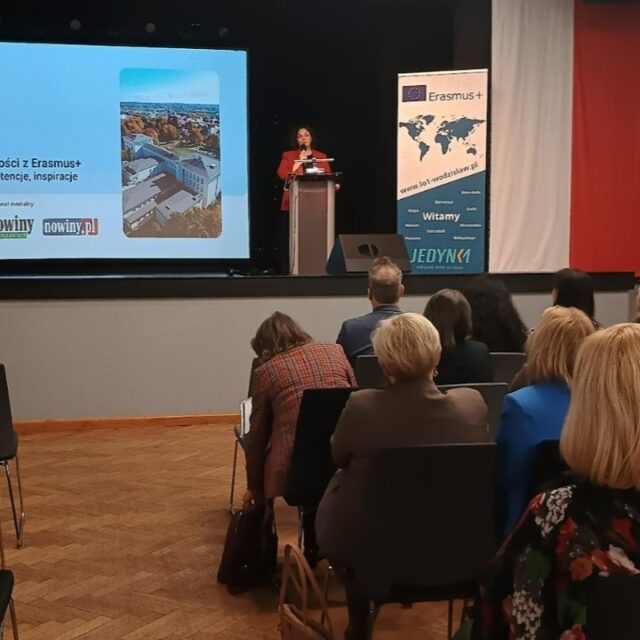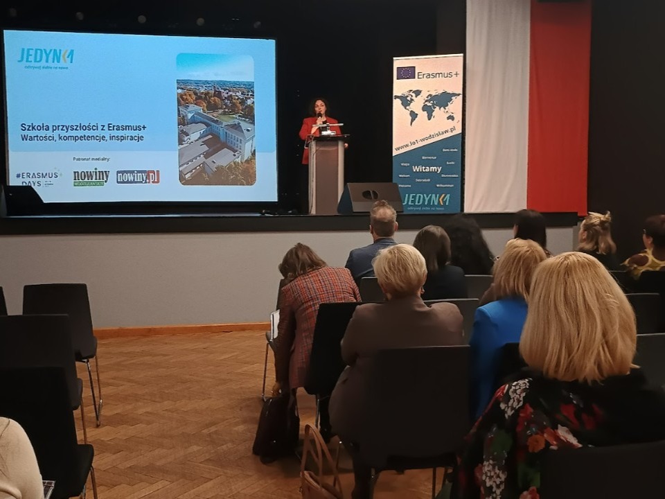 20 października w auli I LO odbyła się konferencja pod hasłem „Szkoła przyszłości z Erasmus+. Wartości, kompetencje, inspiracje”, zorganizowana w ramach obchodów #ErasmusDays 2025. Wydarzenie zgromadziło nauczycieli i dyrektorów szkół podstawowych i ponadpodstawowych z regionu, zainteresowanych realizacją projektów europejskich w ramach programu Erasmus+. Pierwsza prelekcja, wygłoszona przez Alinę Prochasek, dotyczyła nowych możliwości i perspektyw, jakie oferuje program Erasmus+, a także roli projektów w kształtowaniu kompetencji przyszłości. Następnie głos zabrała Marta Iwańska, która zaprezentowała dobre praktyki w realizacji projektów Erasmus+ w oparciu o priorytety programu, wskazując na przykłady udanych działań szkół z regionu. Po krótkiej przerwie na kawę i networking uczestnicy mieli okazję odwiedzić stanowiska informacyjne przygotowane przez szkoły realizujące projekty w sektorach Edukacja szkolna i Kształcenie i szkolenie zawodowe, by wymienić się doświadczeniami i nawiązać nowe kontakty. W drugiej części konferencji wystąpiły Hanna Knopek i Dominika Sidor – nauczycielki I LO w Wodzisławiu Śląskim, które w swoim wystąpieniu pt. „Kluczowe kompetencje przyszłości i ich kształtowanie w projektach Erasmus+” pokazały, jak realizowane w szkole działania europejskie przekładają się na rozwój uczniów, innowacje dydaktyczne i integrację wartości europejskich w codziennym nauczaniu. Na zakończenie odbyła się sesja Q&A – otwarte forum pytań i odpowiedzi, podczas którego uczestnicy mogli wymienić się doświadczeniami i uzyskać praktyczne wskazówki dotyczące planowania i realizacji własnych projektów. Patronem medialnym konferencji były Nowiny Wodzisławskie i portal nowiny.pl.