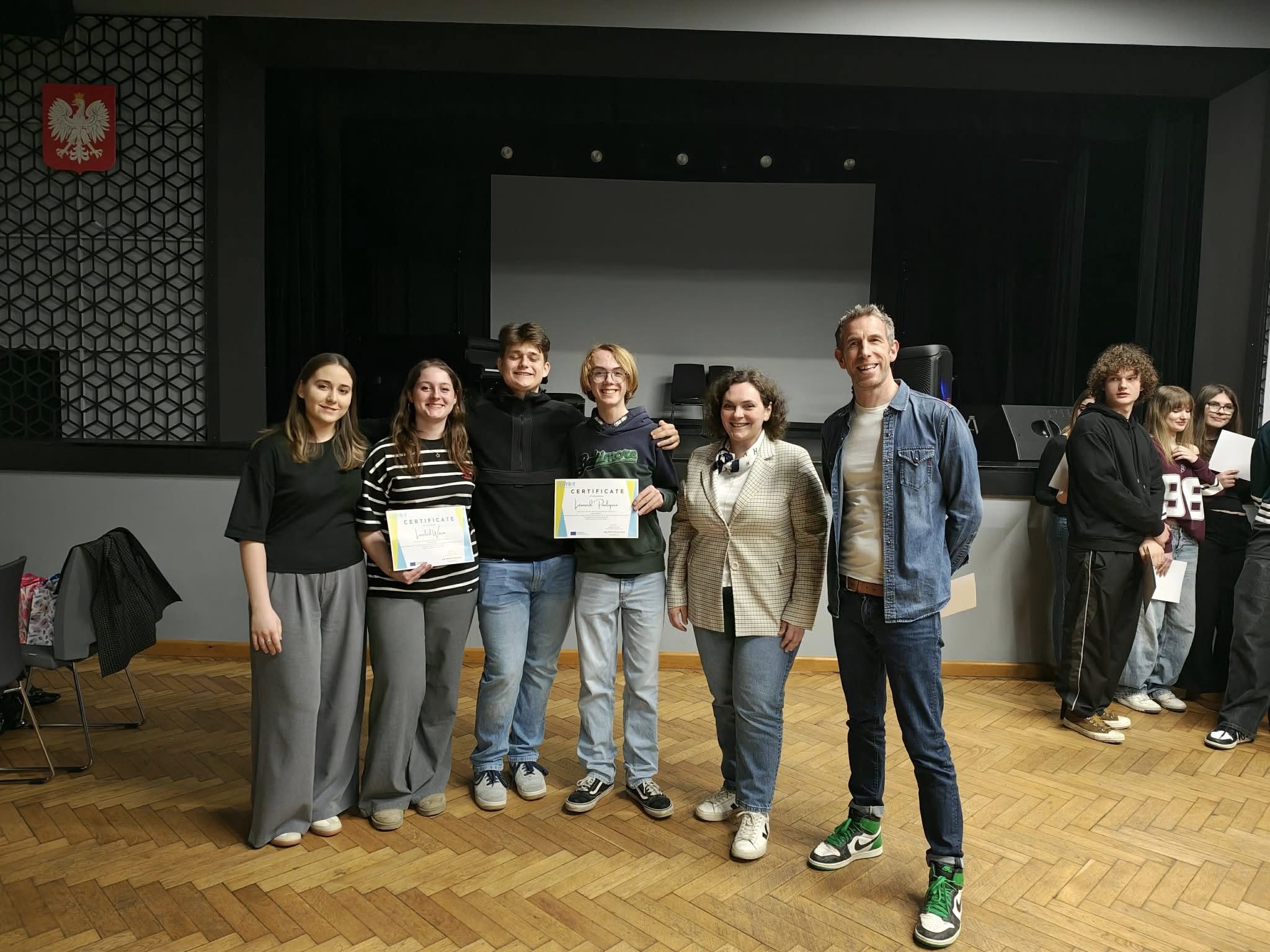 Dzięki indywidualnemu wyjazdowi do szkoły partnerskiej młodzi ludzie mogli w pełni zanurzyć się w codziennym życiu szkolnym. Leonard i Loreleil razem ze swoimi polskimi kolegami – Emilią Hajok (4D) i Michałem Kowalikiem (2B) – uczestniczyli w zajęciach i poznawali polski system edukacji „od środka”.