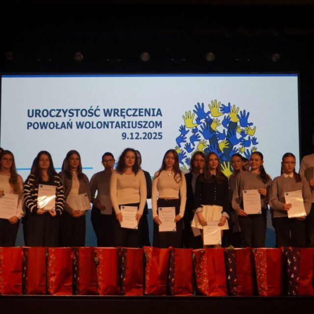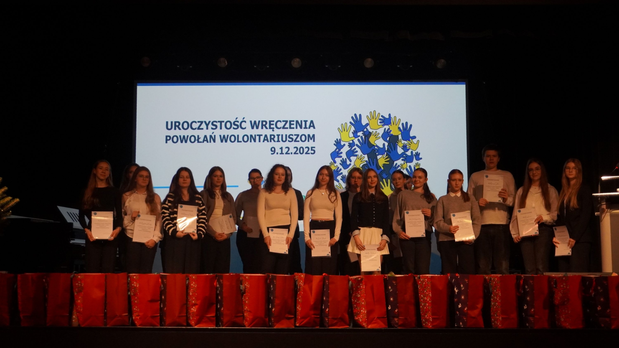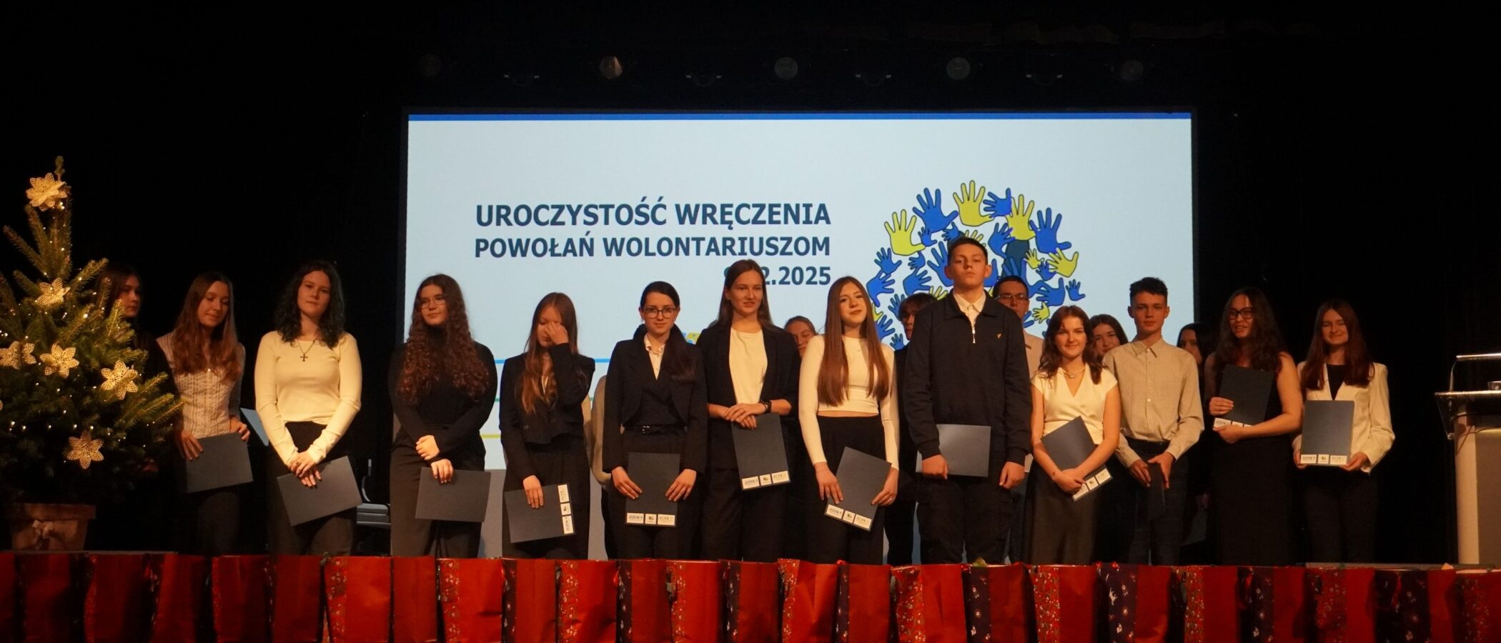 9 grudnia 2025 r. w auli szkolnej odbyła się uroczysta gala, podczas której 24 uczniów Jedynki odebrało powołania do pracy w wolontariacie stałym.