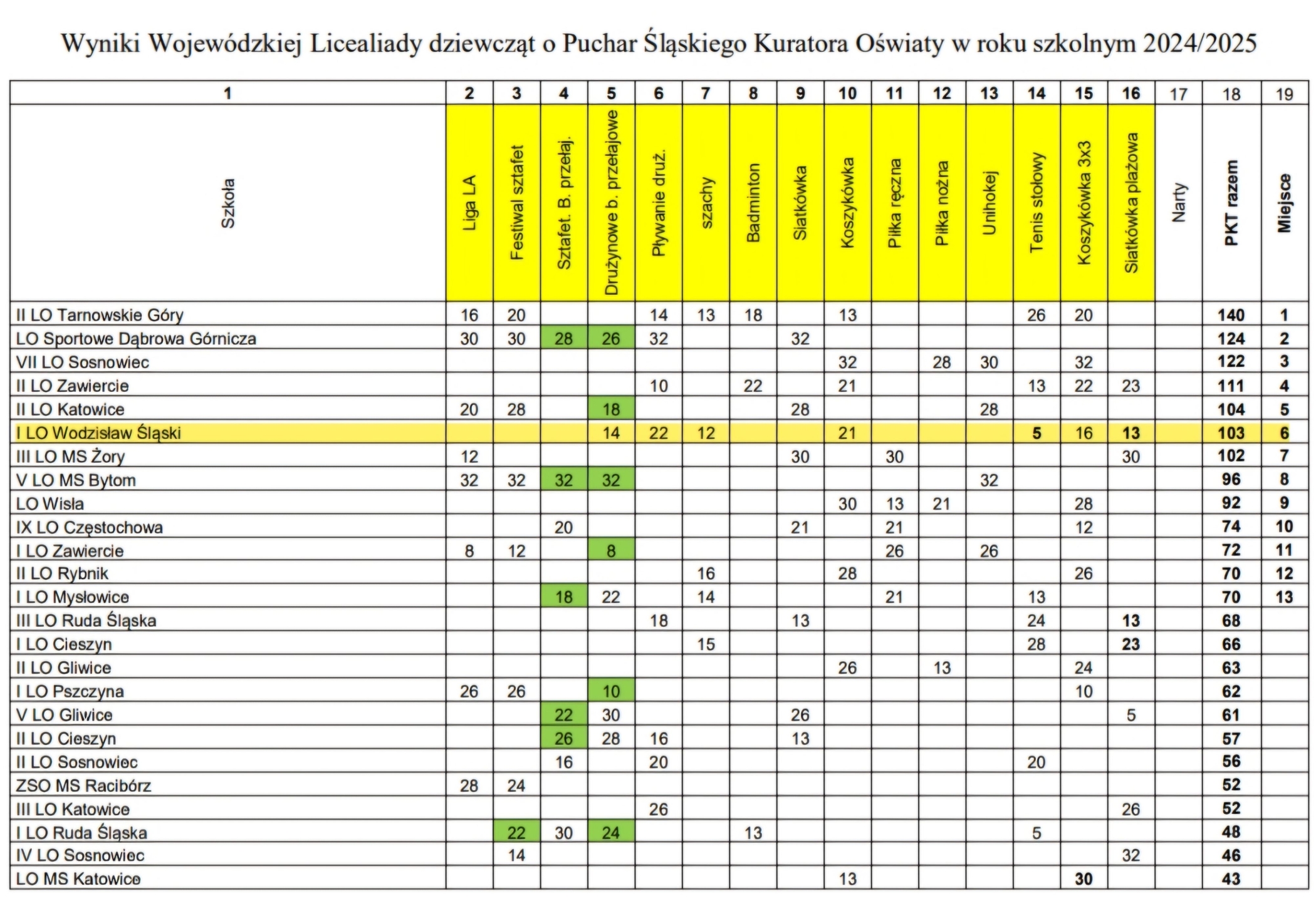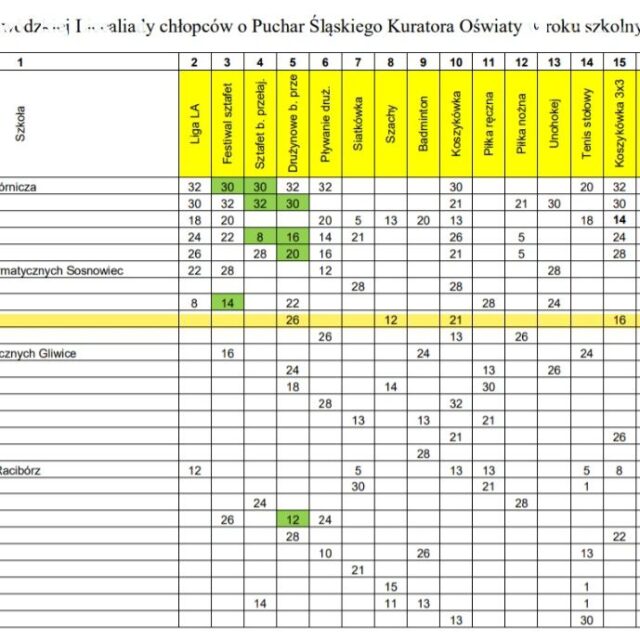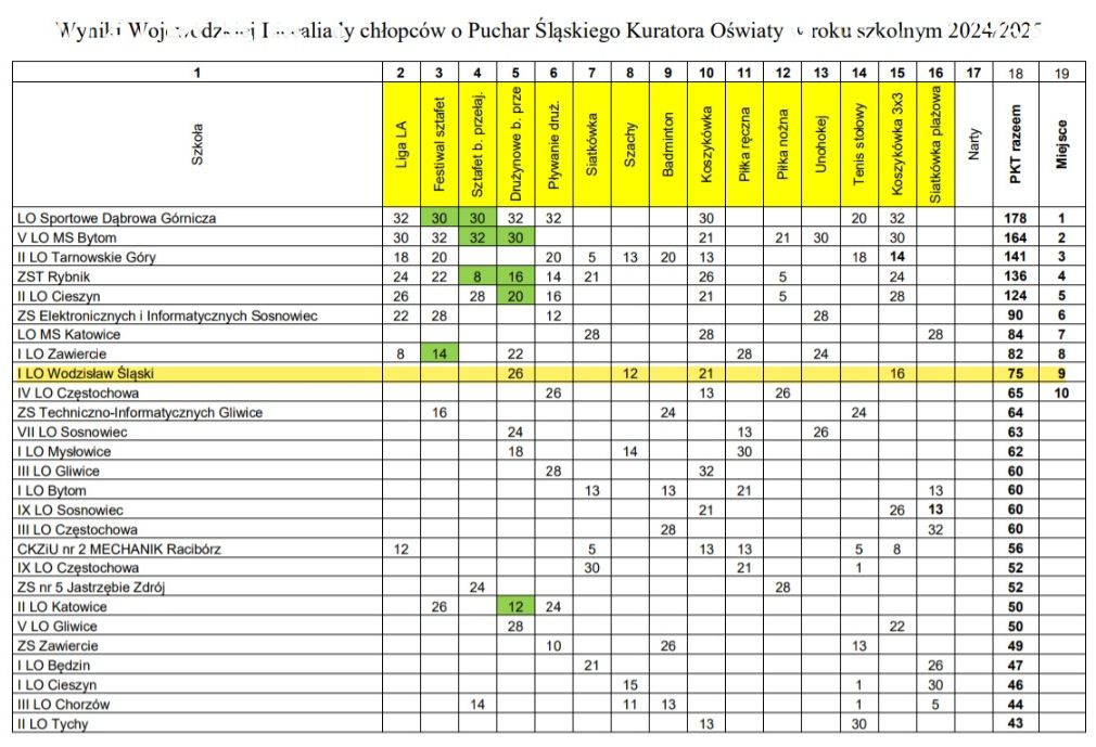 Śląski Szkolny Związek Sportowy w Katowicach opublikował oficjalny ranking szkół w rywalizacji sportowej za rok szkolny 2024/2025.