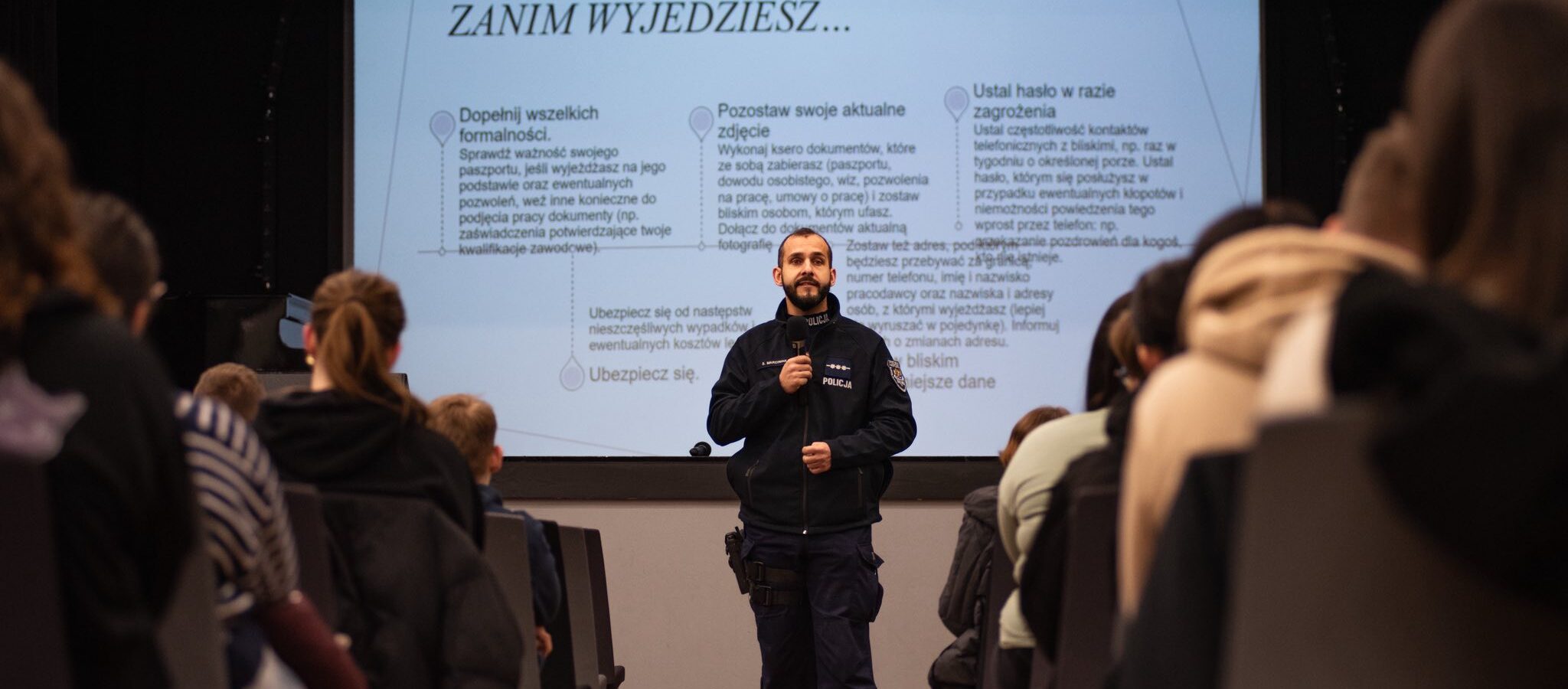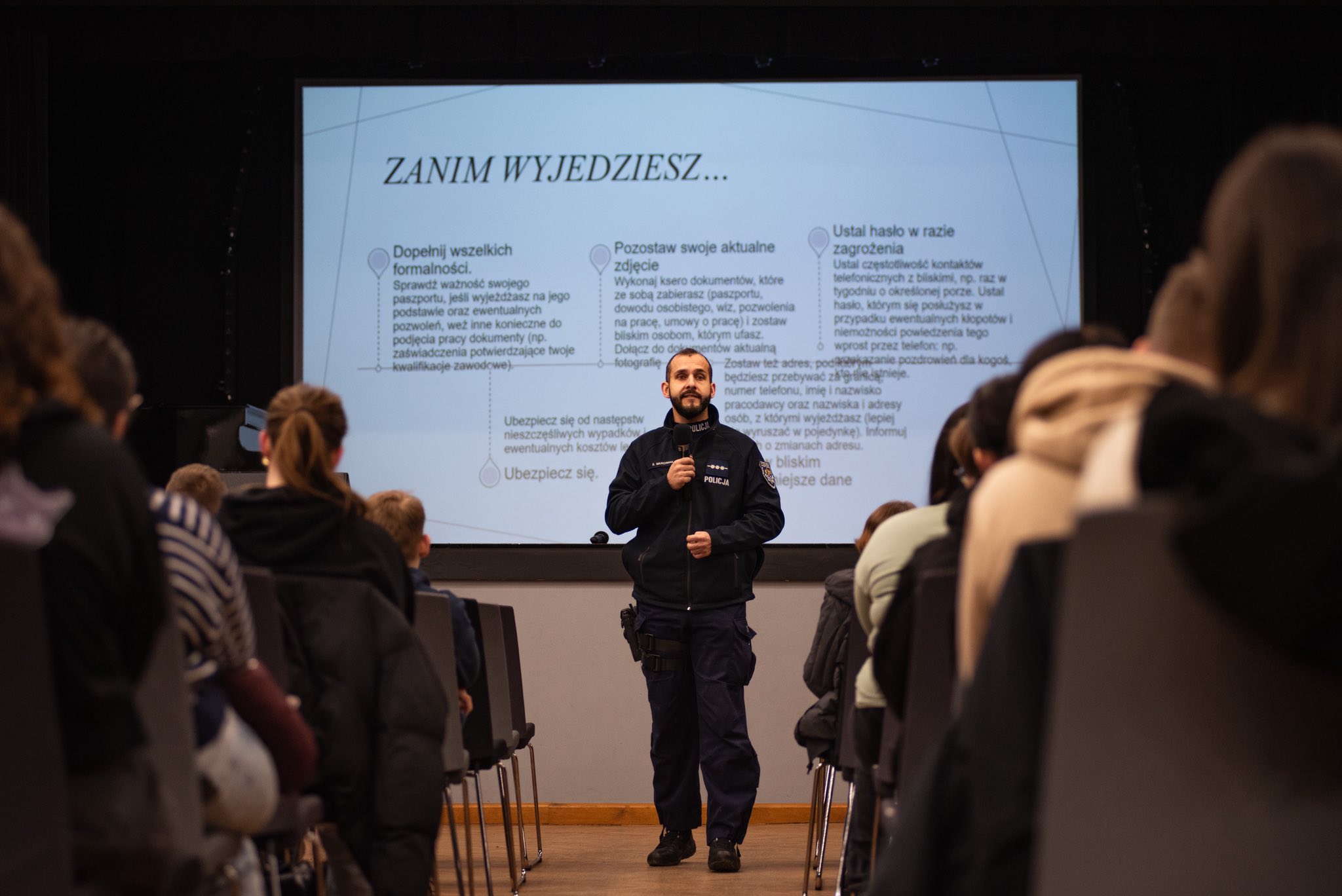 Tematem prelekcji był problem handlu ludźmi. Podczas spotkania młodzież dowiedziała się, jakie są najczęstsze metody działania przestępców, jakie sygnały ostrzegawcze powinny wzbudzić niepokój oraz w jaki sposób reagować w sytuacjach zagrożenia.