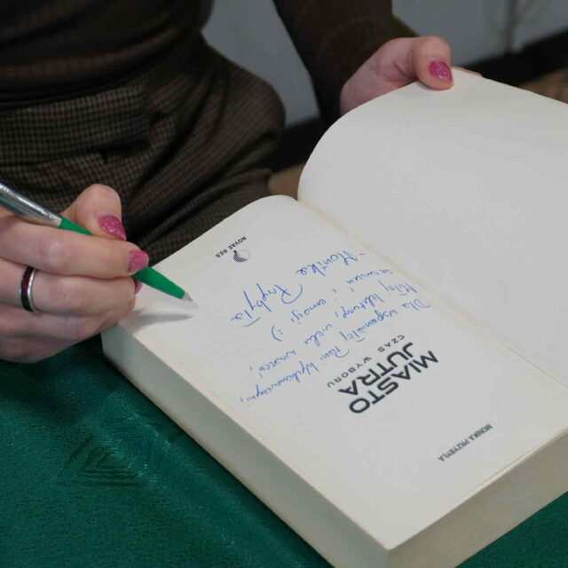 Autorka odpowiedziała na pytania prowadzących i publiczności, dotyczące m.in. inspiracji twórczych, kreacji powieściowych bohaterów, pracy nad książką, procesu wydawniczego, a także udzieliła cennych rad tym, którzy chcieliby spróbować swoich sił w pisaniu. Co ważne, dzieląc się swoimi doświadczeniami, pokazała, że można z powodzeniem łączyć różne zainteresowania.