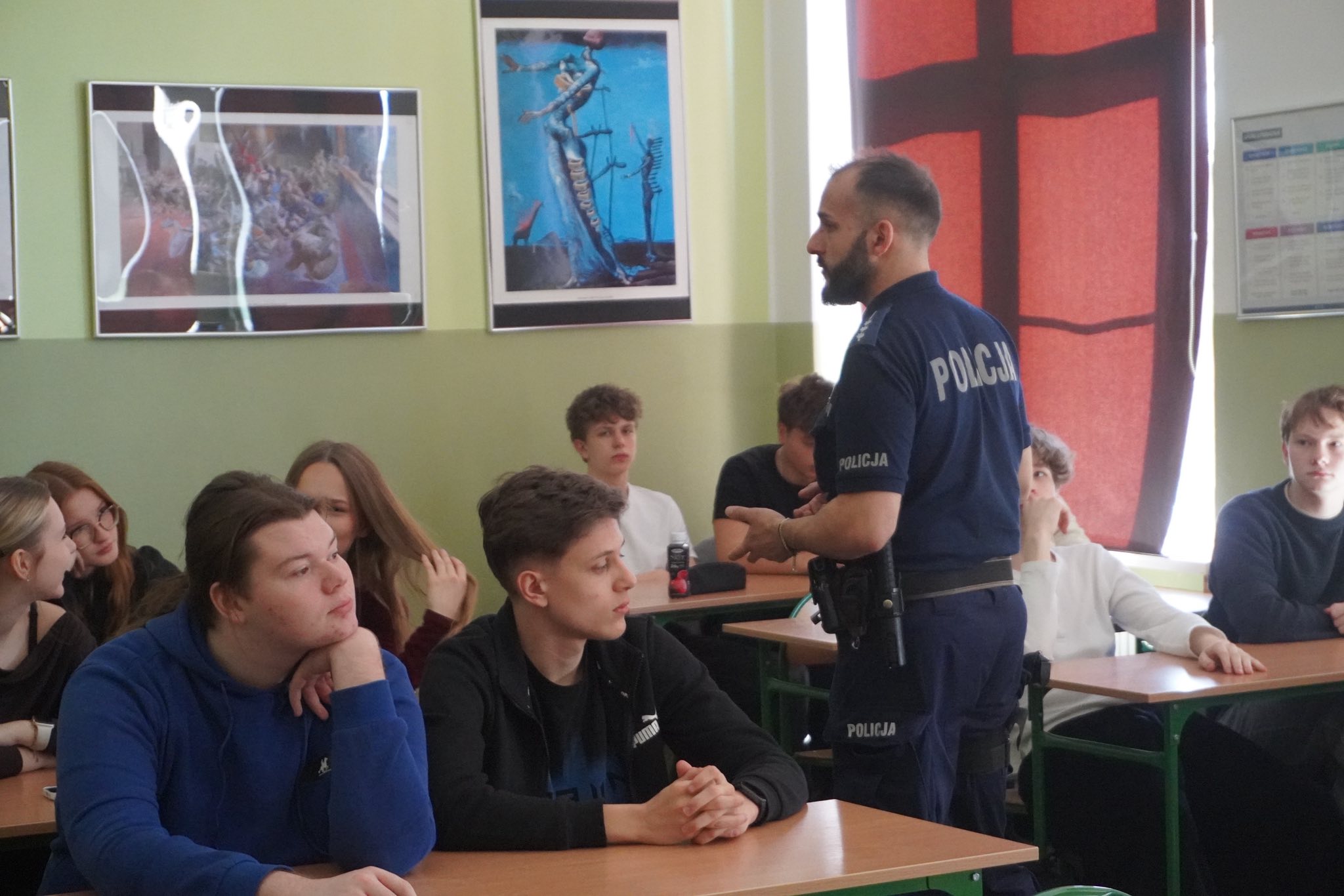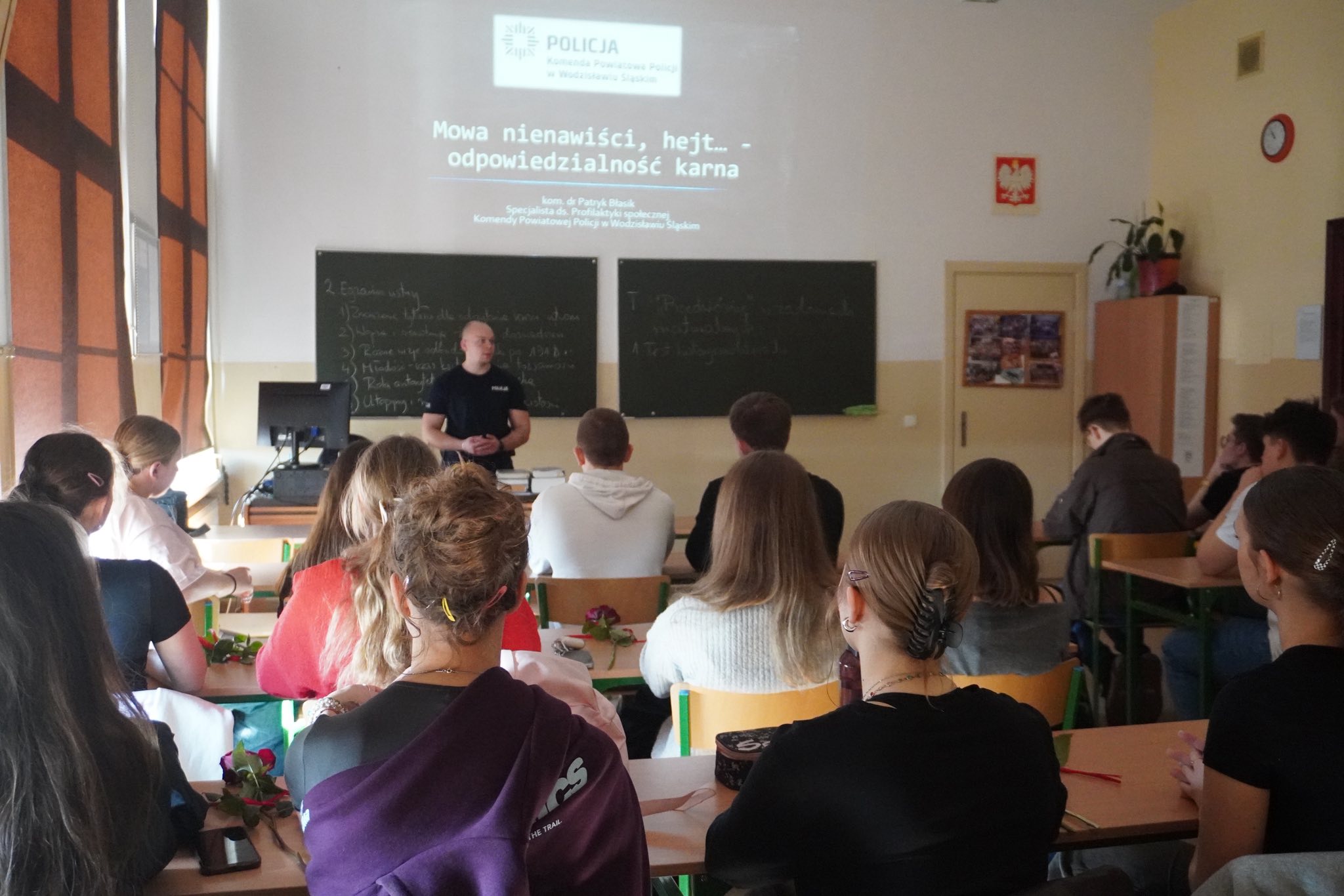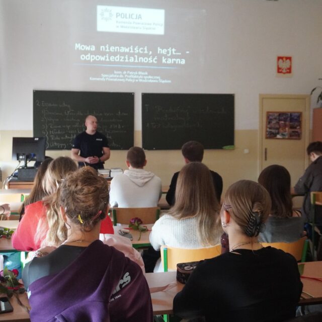 Uczniowie klas drugich uczestniczyli w spotkaniu poświęconym zjawiskom hejtu i mowy nienawiści w Internecie oraz związanej z nimi odpowiedzialności karnej, natomiast dla uczniów klas trzecich przygotowano wykład dotyczący narkotyków, dopalaczy oraz odpowiedzialności karnej nieletnich i osób pełnoletnich.