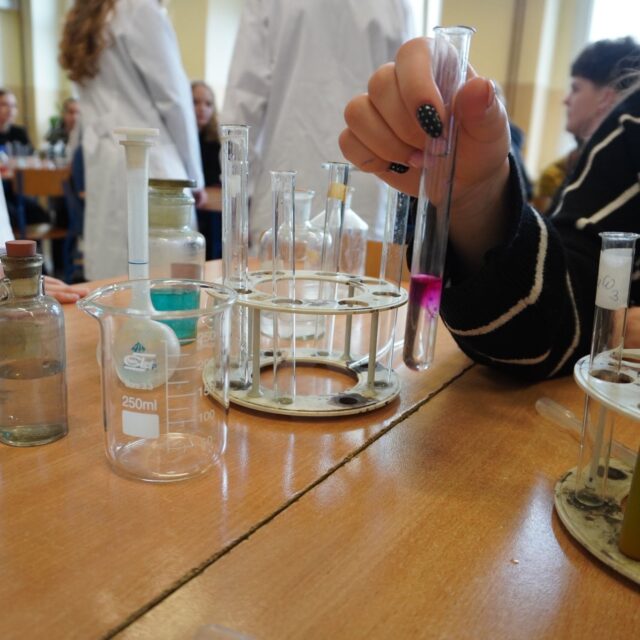 Następnie goście pod opieką starszych koleżanek i kolegów uczestniczyli w przygotowanych specjalnie dla nich warsztatach tematycznych. Uczniowie mogli zajrzeć do pracowni przedmiotowych, wziąć udział w doświadczeniach oraz porozmawiać z nauczycielami i licealistami o codziennym życiu szkolnym, kierunkach kształcenia i możliwościach rozwoju zainteresowań.