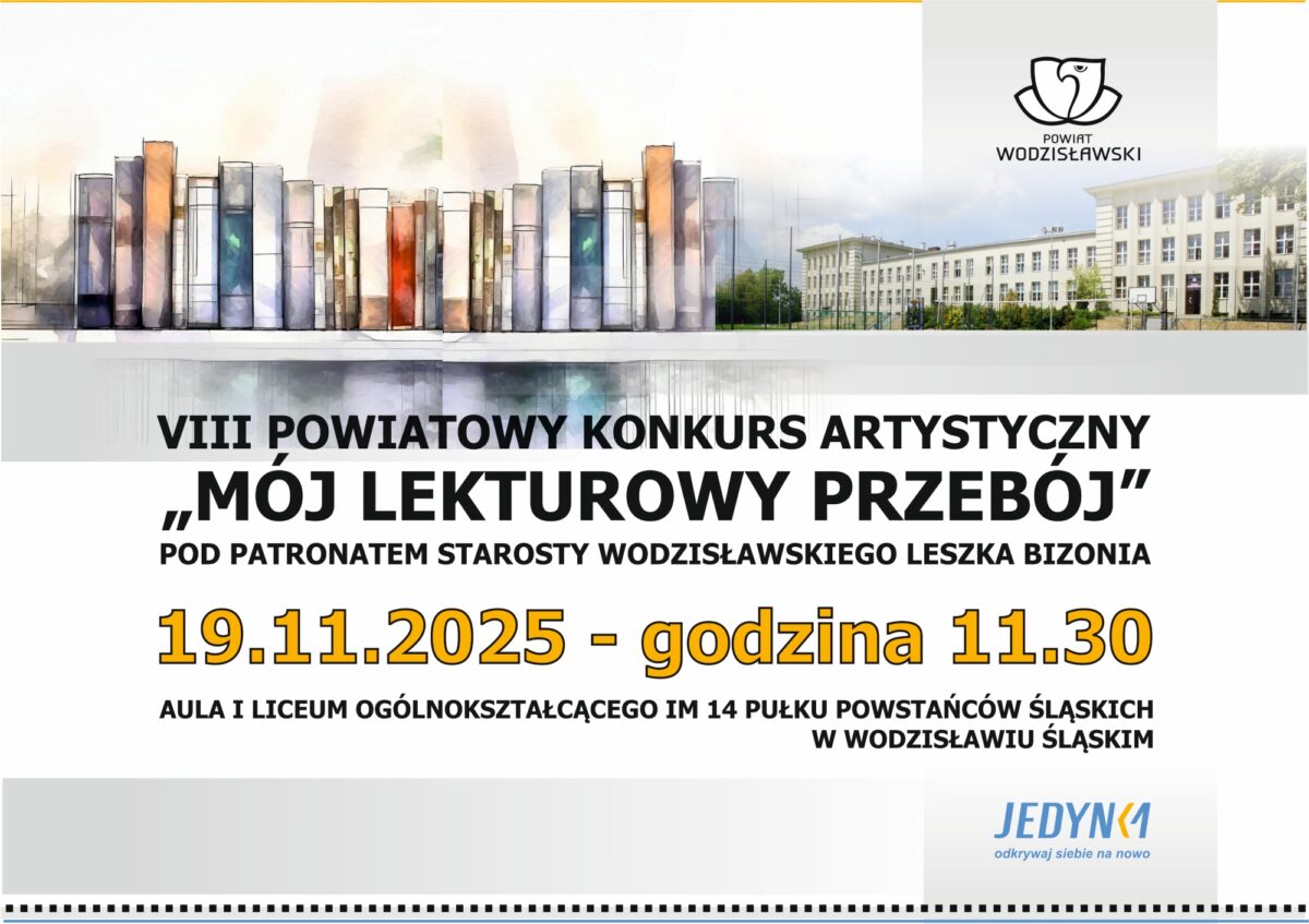 Organizatorem VIII Powiatowego Konkursu Artystycznego „Mój lekturowy przebój” jest I Liceum Ogólnokształcące im. 14 Pułku Powstańców Śląskich w Wodzisławiu Śląskim. Po raz kolejny konkurs przebiega pod honorowym patronatem Starosty Wodzisławskiego Leszka Bizonia.