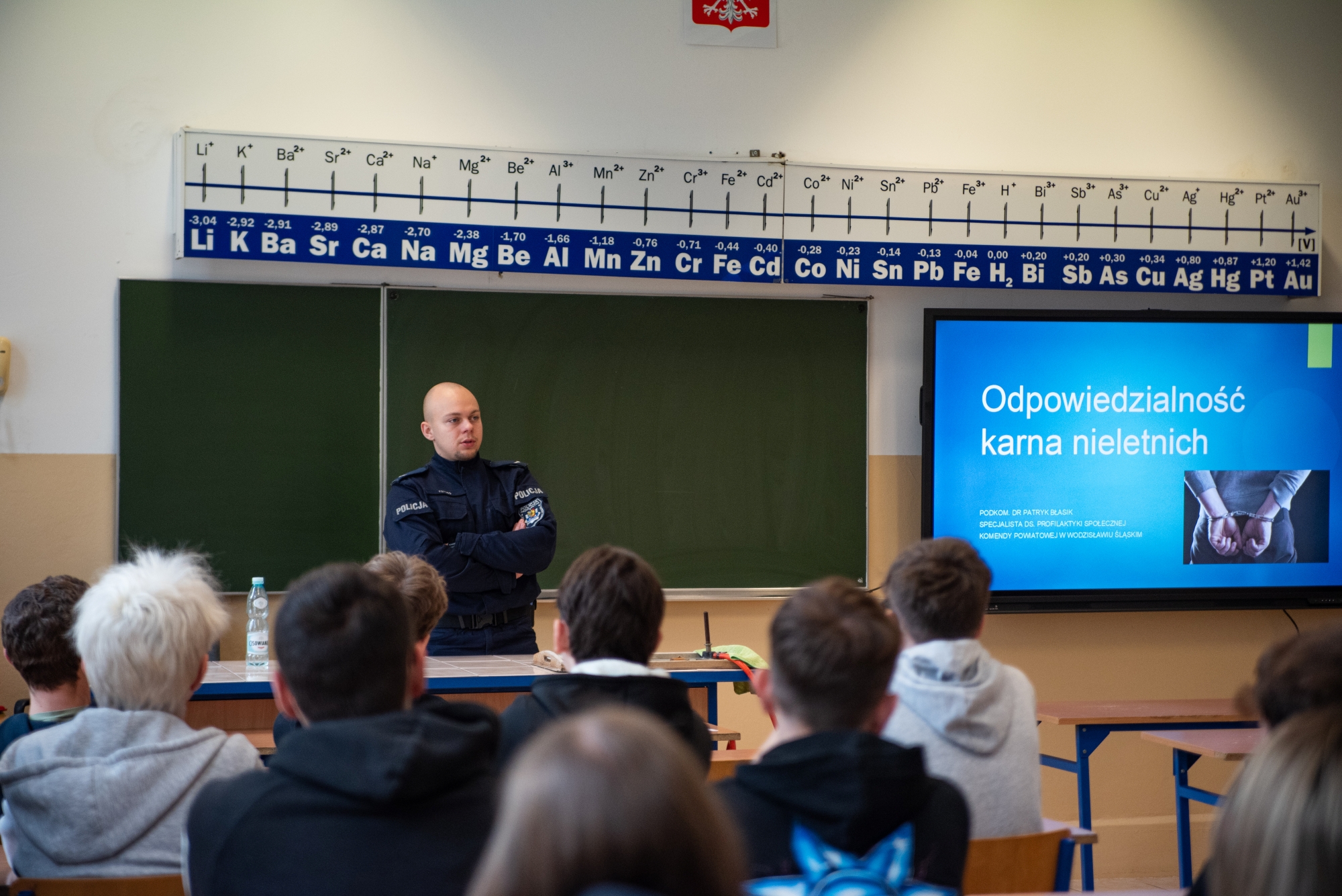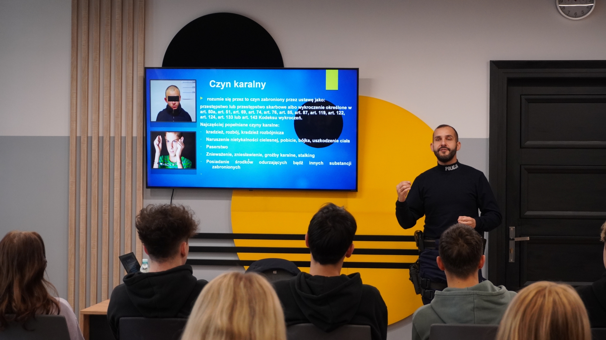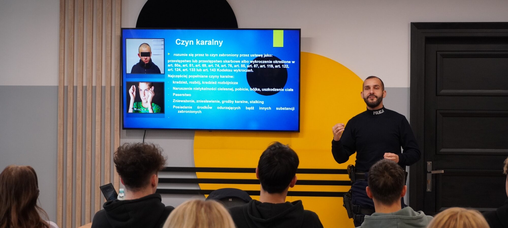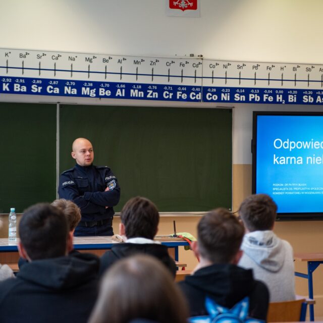 Pierwszoklasiści wzięli udział w spotkaniu poświęconym odpowiedzialności karnej nieletnich, które poprowadzili funkcjonariusze policji. Zajęcia o charakterze profilaktycznym miały na celu uświadomienie młodzieży, jakie konsekwencje mogą wynikać z popełniania czynów zabronionych.